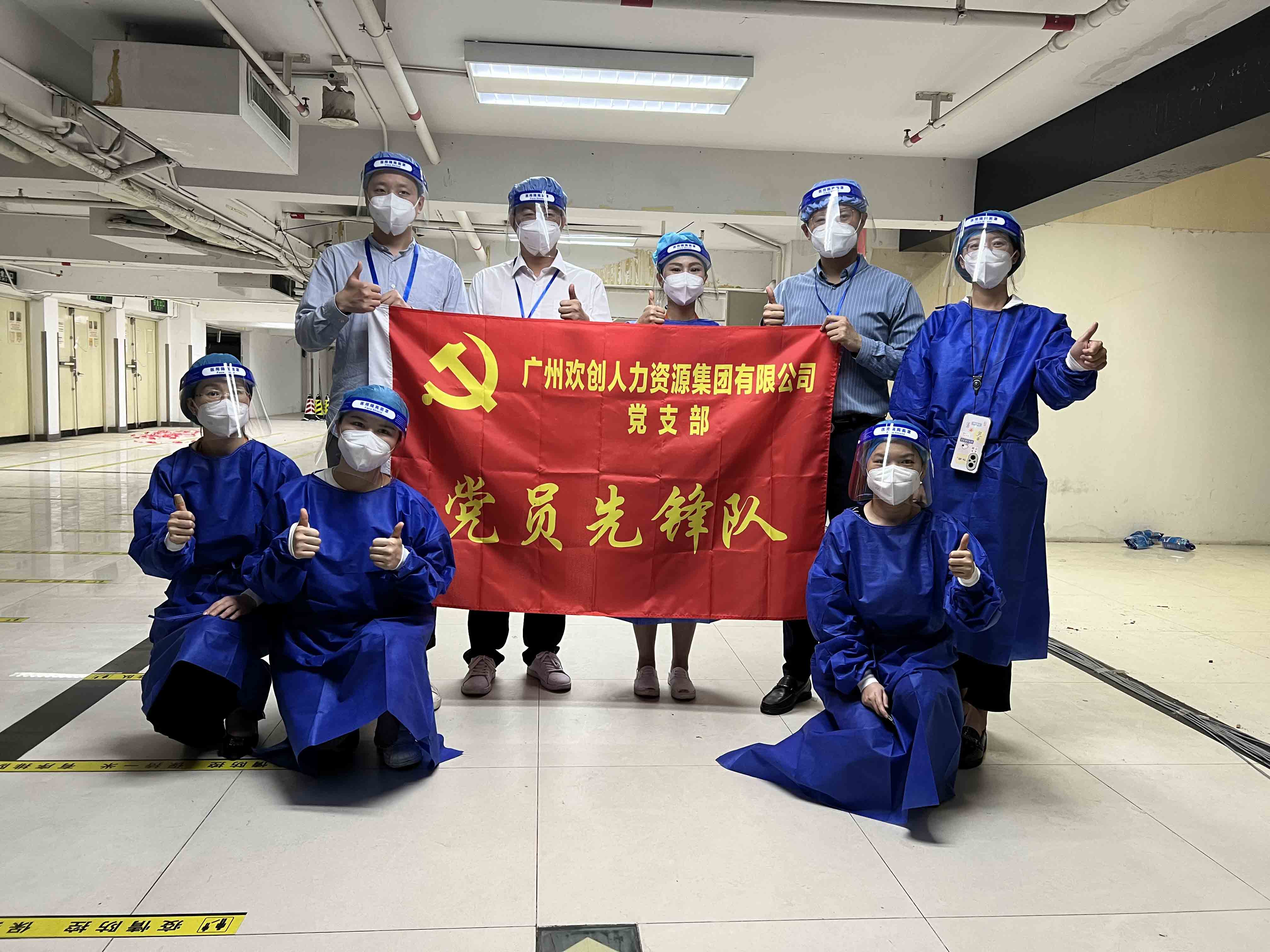 疫情防控,志愿有我。来自欢创集团党支部党员黄旭、卢越、陈华义、党支部入党积极分子刘丰林以及入党申请人李小方、吴蓉和集团优秀工作者钟雯珊、钟礼红共8名志愿者是首批抵达“好又多”核酸点的支援人员,作为志愿者他们深知当前核酸的意义,不愿意耽误一分一秒,快速穿戴好防护服,积极投入到支援工作中。